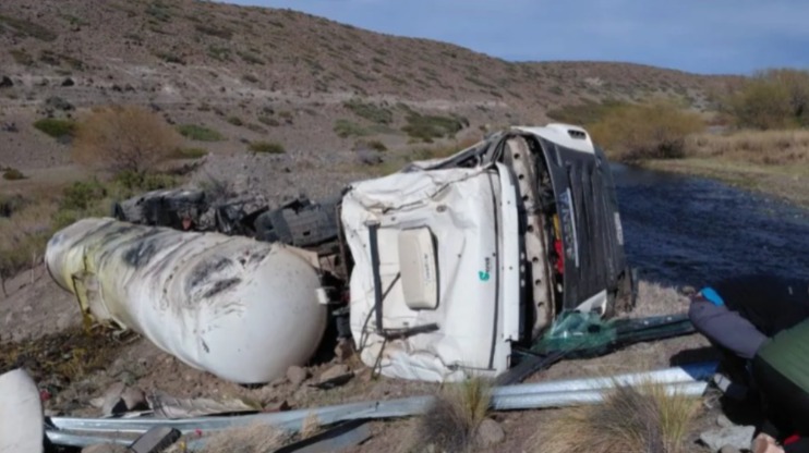 Un camionero resultó herido por un vuelco sobre la Ruta 242, cerca de Las Lajas: era de Paraguay, llevaba aceite vegetal y viajaba hacia Chile